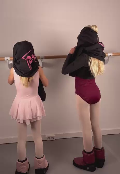 This Kids Sweater combines warmth, comfort, and style for young dancers. Made from a blend of 80% cotton and 20% polyester with a cozy brushed interior, it keeps kids comfortable and active on cooler days. The black base is highlighted with our pink ‘Rose’ design, giving the sweater a playful and bold look that’s perfect for dance class or everyday wear.